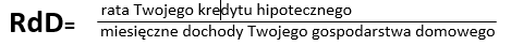 Wskaźnik RdD to stosunek Twoich wydatków, które ponosisz na obsługę miesięcznej raty kapitałowo-odsetkowej kredytu mieszkaniowego do miesięcznego dochodu Twojego gospodarstwa domowego za okres ostatnich trzech miesięcy przed miesiącem, w którym składasz wniosek.