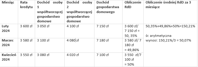 - Przykład wyliczenia średniej wartości RdD dla wieloosobowego gospodarstwa domowego, które spełnia warunek – RdD powyżej 30 %